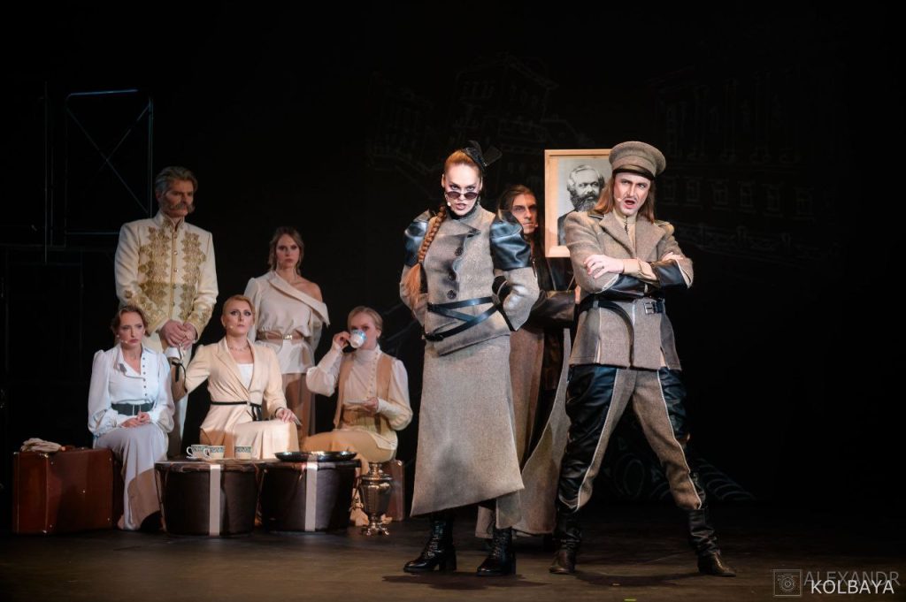 Еще пара колоритных персонажей — социалист Келлер (Григорий Захарьев) и Агриппина Бурдовская (Надежда Бодрова). В оригинале у Достоевского был Антип Бурдовский, но в постановке пол персонажа был изменен на женский. Это авторское решение пошло только на пользу спектаклю, потому что герои отлично работают именно в паре. Их «Марш вымогателей» получился очень динамичным и по-настоящему смешным. Попытки «социалистов» (на самом же деле, настоящих аферистов!) казаться серьезными и угрожающими превращаются в карикатурную драку с выяснением отношений.