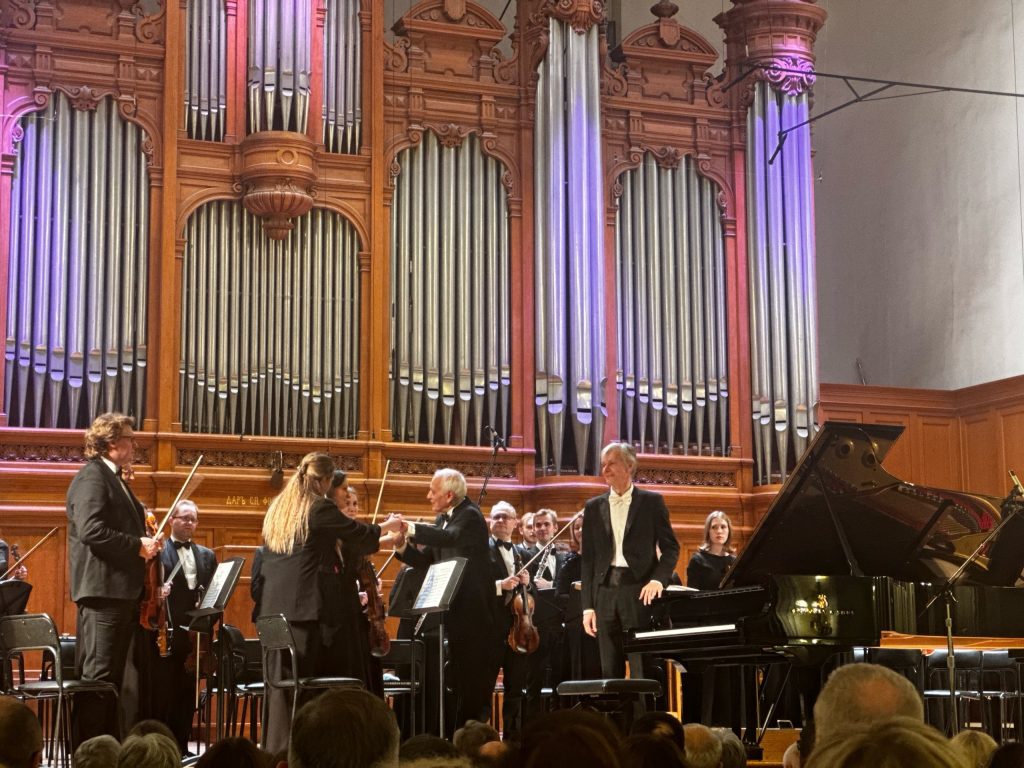 Знаменитый дирижер Анатолий Левин и его коллектив — Концертный симфонический оркестр Московской консерватории — 27 февраля представили программу из сочинений Иоганнеса Брамса. В ней принял участие коллега Левина — декан фортепианного факультета, заведующий кафедрой специального фортепиано, профессор Андрей Писарев. Он солировал в Первом концерте Брамса.