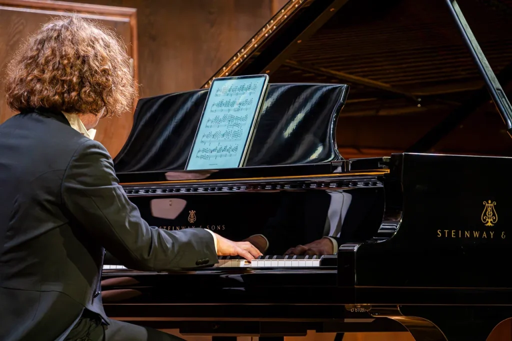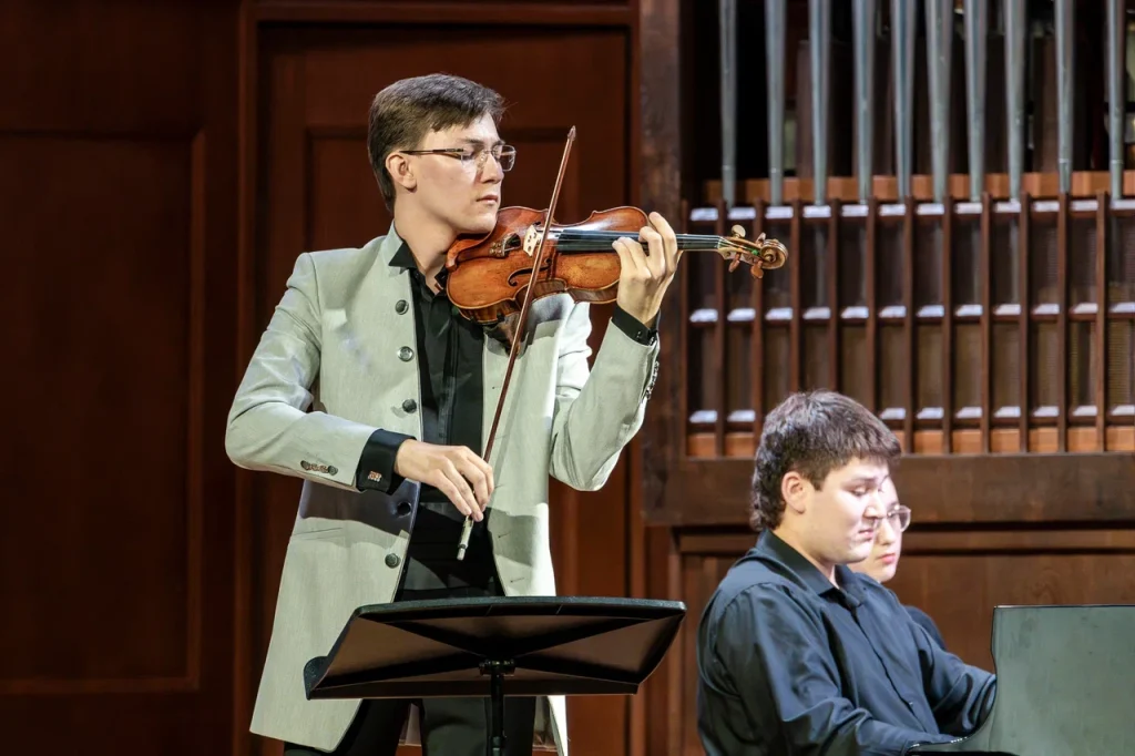 Музыканты сумели передать всю глубину и экспрессию сочинения. Уже с первых тактов Décidé стало ясно, что финал концерта станет эмоциональной кульминацией вечера: мощные фортепианные пассажи Сергея Давыдченко контрастировали с драматическими линиями скрипки Ислямова, создавая напряженный музыкальный диалог. Изящная Sicilienne (вторая часть), с ее утонченными, почти импрессионистскими красками, прозвучала легко и воздушно, словно мимолетное воспоминание. «Если “очеловечивать” свой инструмент, я бы сравнил его скорее с верным другом, которому можешь доверить свои чаяния и надежды, который чутко отзывается на мои желания и просьбы», — отметил Давыдченко. В этот вечер он предстал в двух амплуа: как пианист и как композитор.