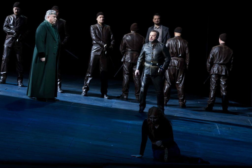 Алексей Антонов рисовал величественность короля Марка своим гулким, основательным голосом с крепкими верхами и устрашающими низами — внешняя статика артиста компенсировалась именно вокальной трактовкой. Одним из главных персонажей спектакля стал слуга Тристана Курвенал в исполнении Ришата Решитова — его большой, сочный баритон идеально вписался в музыкальную концепцию постановки, а актерски певец очень трогательно передавал привязанность своего героя к хозяину. Запомнился Дмитрий Пьянов в партии Молодого моряка, чьей акапельной песенкой открывается опера: его характерный тенор идеально аккумулировал тревогу, заложенную в подтексте этого номера. Другой тенор, уже лирико-драматического плана, молодой солист театра Олег Куликов прекрасно спел небольшую, но драматургически значимую партию Пастуха. У него витальное, очень приятное звучание голоса, который, конечно, требует более серьезных ролей, и фактурная внешность — даже мешковатое черное пальто артисту не помеха.