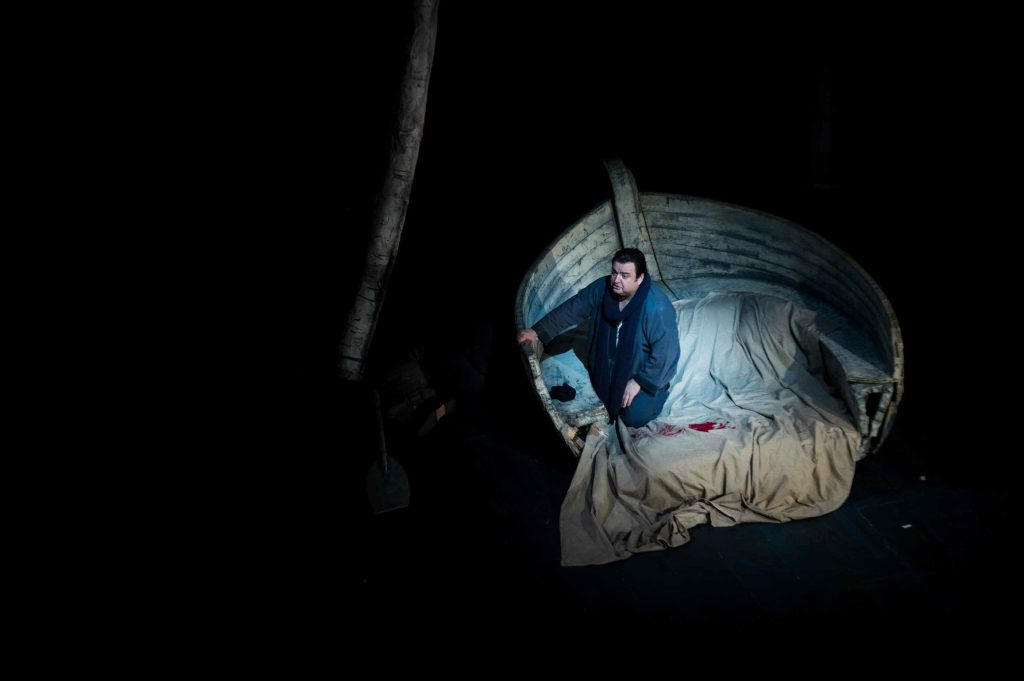 Отдельно хочется сказать про свет Айвара Салихова, ставший полноценным героем спектакля. Именно благодаря ему в первом акте в глубине декорации-трюма возникает палуба корабля, где стоят гребцы, Тристан и Курвенал. Именно он отделяет Тристана и Изольду, находящихся в прямом смысле во тьме, от придворных, Короля и Мелота, стоящих в свете начинающегося дня.