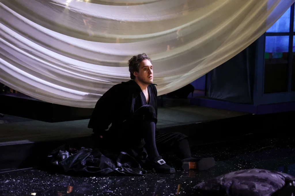 Очередная победа баритона Елисея Лаптева — образ Стеньо, алхимика и несчастного любовника Маддалены. В этом спектакле герой появляется на сцене абсолютно раздавленным, с безумным взглядом и красными глазами. Столь выразительный облик певца дополняется его роскошным, богатейшим на различные оттенки тембром, мастерством интонации и феноменальным актерским существованием на сцене.