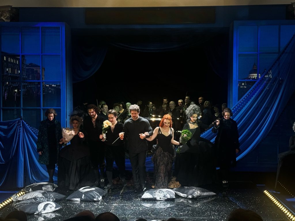 Слишком лаконично и обобщенно оформление постановки (художник по видеопроекции — Александр Андронов) — панели по краям сцены. На них транслировалось лишь три изображения: панорама Венеции, вода венецианских каналов и тучи со сверкающими молниями. Было бы интереснее, если бы, например, в визуальную часть включили фрагменты работ мастеров венецианской школы живописи XV столетия — Тинторетто, Тициана и Беллини. Это добавило бы красивый исторический и художественный контекст в постановку. Но ее авторы ограничились методом простого, очень скупого иллюстрирования. Зато переборщили с использованием звуковых эффектов — например, постоянного внедряемых в действие ударов грома, которые частенько заглушали музыку.
